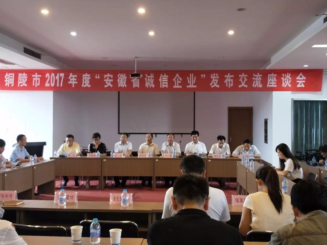 2018年7月6日,"安徽省誠信企業(yè)"發(fā)布交流會在安徽銅都流體科技股份有限公司隆重舉行。我公司榮獲"2017-2018年度"安徽省誠信企業(yè)"。