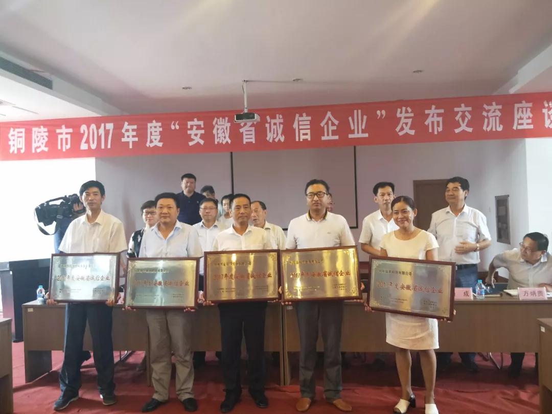 銅都流體榮獲2017-2018年度“安徽省誠信企業(yè)”稱號