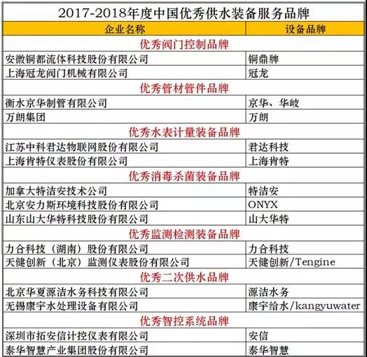 2017-2018年度中國優(yōu)秀供水裝備服務(wù)品牌