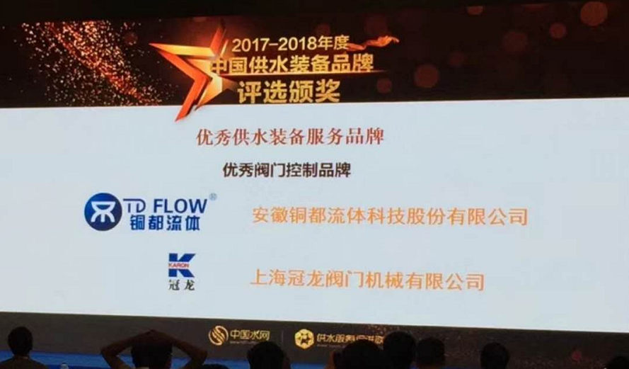 2018年6月28日 在江西南昌舉行的第三屆供水高峰論壇上,安徽銅都流體科技股份有限公司榮獲"2017-2018年度中國優(yōu)秀供水裝備服務(wù)品牌"。