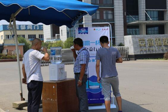 他們用汗水,方便了市民的生活、他們用汗水,洗去了城市的塵埃,因為要堅守崗位,甚至有時無法在口渴時喝一杯涼水,也無法在酷暑難耐時稍作休息。炎炎夏日,一杯清水對坐在辦公室的市民來說,是微不足道的,但是對高溫酷暑下的為戶外高溫作業(yè)人員來說,喝一杯清水在繁忙的一天中卻顯得如此奢侈。7月25日,共青團銅陵市委、銅陵日報社聯(lián)合發(fā)起"請喝一杯水"愛心公益活動后,我公司立即響應(yīng)號召,在我公司大門口設(shè)立愛心崗亭"愛心休息站",為在烈日下工作的人們提供夏季的一絲涼意。