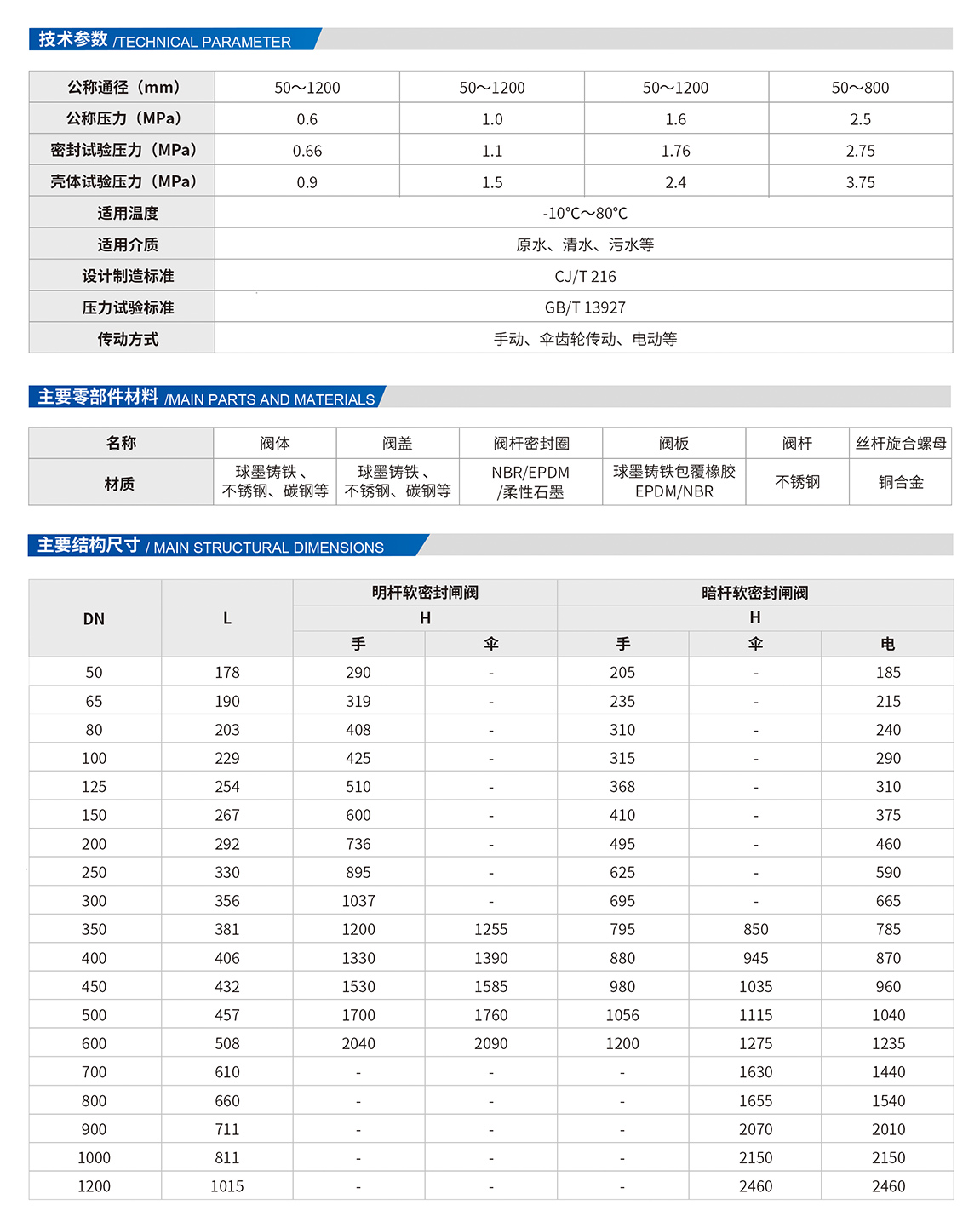 3、閘板橡膠與鑄鐵骨架之間粘間強(qiáng)度高。鑄鐵骨架外表面全部包覆橡膠;包膠厚度均高于國(guó)家標(biāo)準(zhǔn)規(guī)定,包膠工藝采用先進(jìn)的注膠成型技術(shù),成型后的閘板表面光潔無(wú)缺陷,橡膠厚度均勻其粘合強(qiáng)度高,彈性好,使用壽命長(zhǎng)。